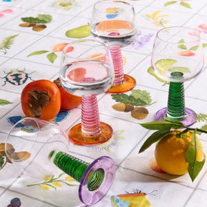 This Garden Party Stalk Wine Glass 2P Set features two clear deep wine glasses, each with a chunky green stalk stem and a vibrant purple base. Whether you're savouring a glass of your favourite wine or hosting a lively gathering with friends, these glasses add a touch of playful elegance to any occasion. Perfect for toasting under the stars or enjoying a cozy evening indoors, the Garden Party Stalk Wine Glasses bring a splash of colour and a dash of charm to your table. Cheers to good company, great wine, and unforgettable moments!