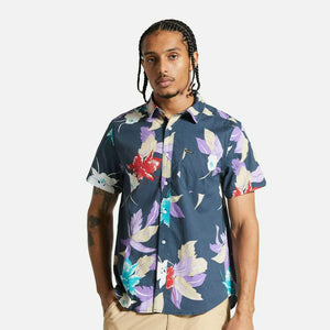 Designed with custom prints in a stretch-infused plain weave, it's ready for happy hour and holidays. The breathable tri-blend has been treated with an enzyme softener wash for a unbeatable comfort from day one.