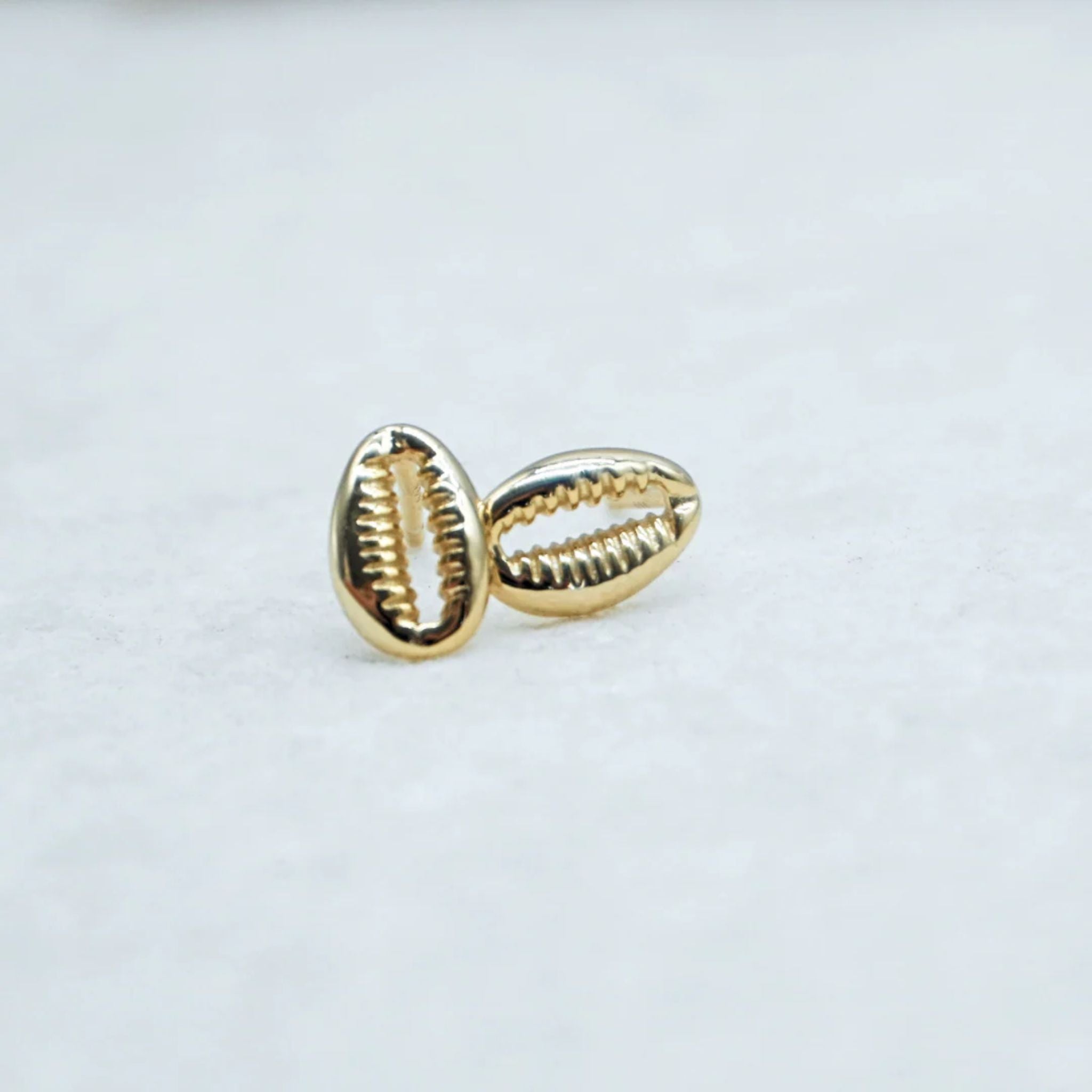 Dainty gold cowrie shells=The perfect accessory on their own or paired with everything in the Kailumea collection. These seriously cute earrings are the ultimate must-have for ocean-loving girls, who rock a full stack or simply wear their love for the ocean everyday. — Ocean-safe, waterproof, and effortlessly stylish, these little treasures are destined to be on high rotation all year round.