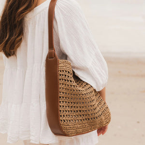 Relaxed, refined, and effortlessly chic — the Louisa Shoulder Bag captures the spirit of endless summer. Handcrafted from natural raffia in an open weave design, its softly structured bucket silhouette makes it the ultimate go anywhere accessory.