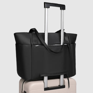 Crafted from durable nylon, the Chicago Tote offers generous interior space with multiple compartments to hold everything from gym gear and groceries to work or travel essentials. Designed with convenience in mind, the built-in luggage sleeve allows the bag to slide effortlessly over your suitcase handle, making it the perfect carry-on for weekends away or longer trips.