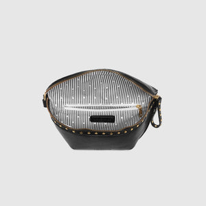 Crafted with a pebbled vegan leather exterior and designed with clean, minimal lines, the Cassidy offers just the right amount of space for your phone, keys, and daily essentials. It features a secure top zip closure, a front zip pocket for easy access, and a comfortable adjustable strap that allows for versatile styling, wear it around your waist or crossbody.
