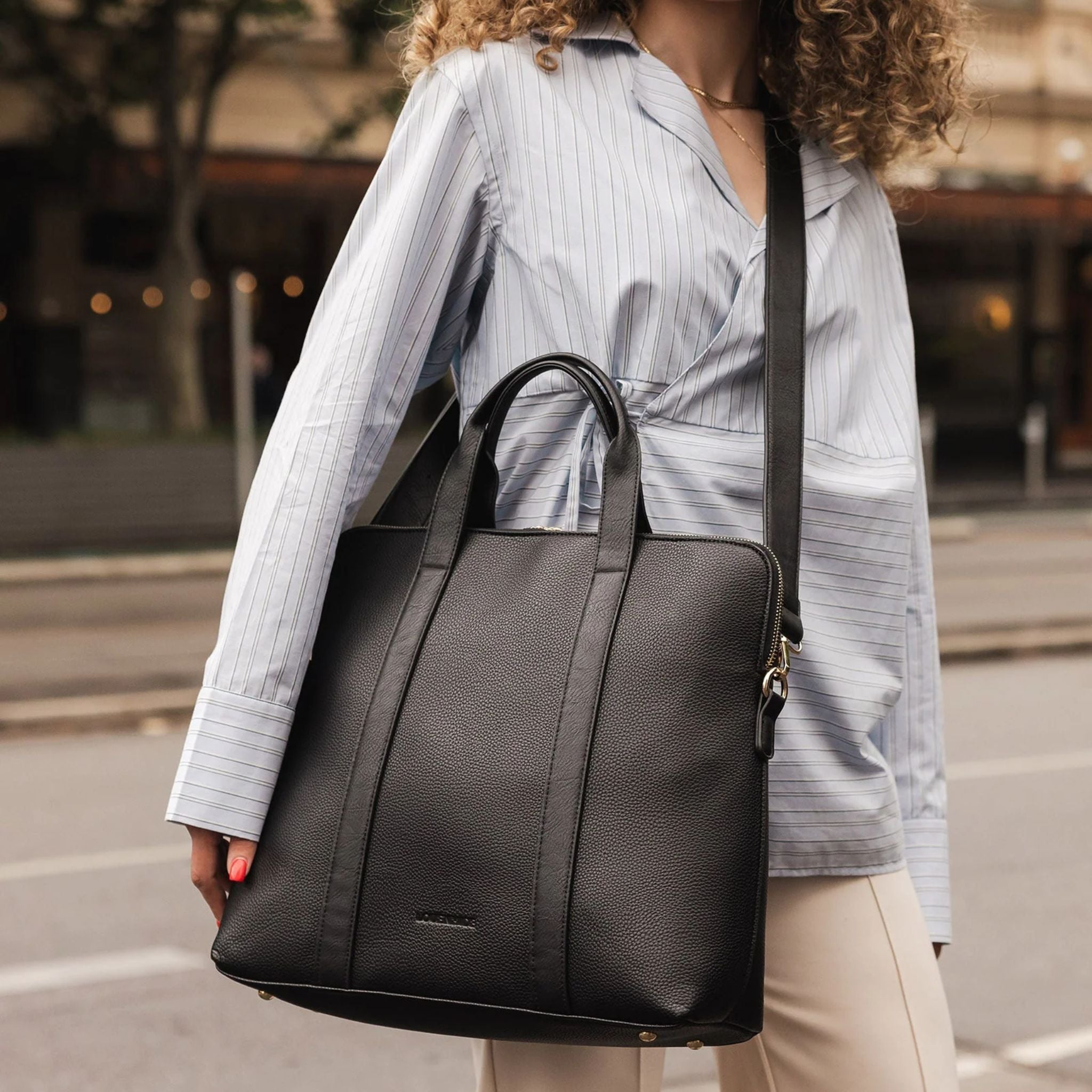 Carry it by the top handles for a polished, professional look, or wear it crossbody using the adjustable, detachable strap for hands-free convenience. Understated and endlessly versatile, the Rhodes Laptop Bag is the ideal companion for office days, university life, or client meetings.