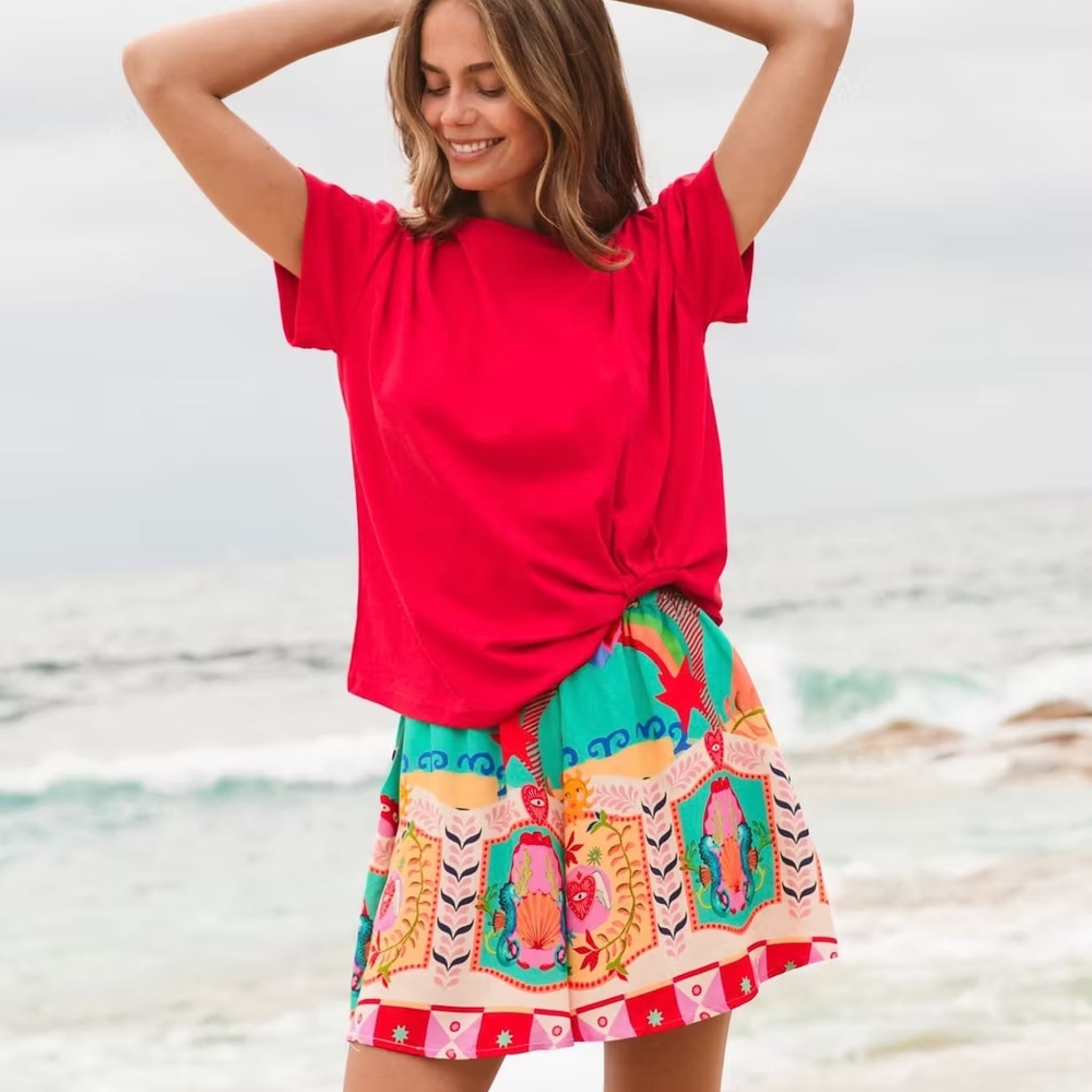 Bring a burst of joy to your everyday with the playful and vibrant Carnival Crush Shorts. Bursting with colour and bold summer motifs, these breezy shorts are made for sunshine, seaside adventures, and spontaneous fun. The relaxed silhouette keeps things easy and comfortable, while the eye catching print turns even the simplest outfit into a statement.