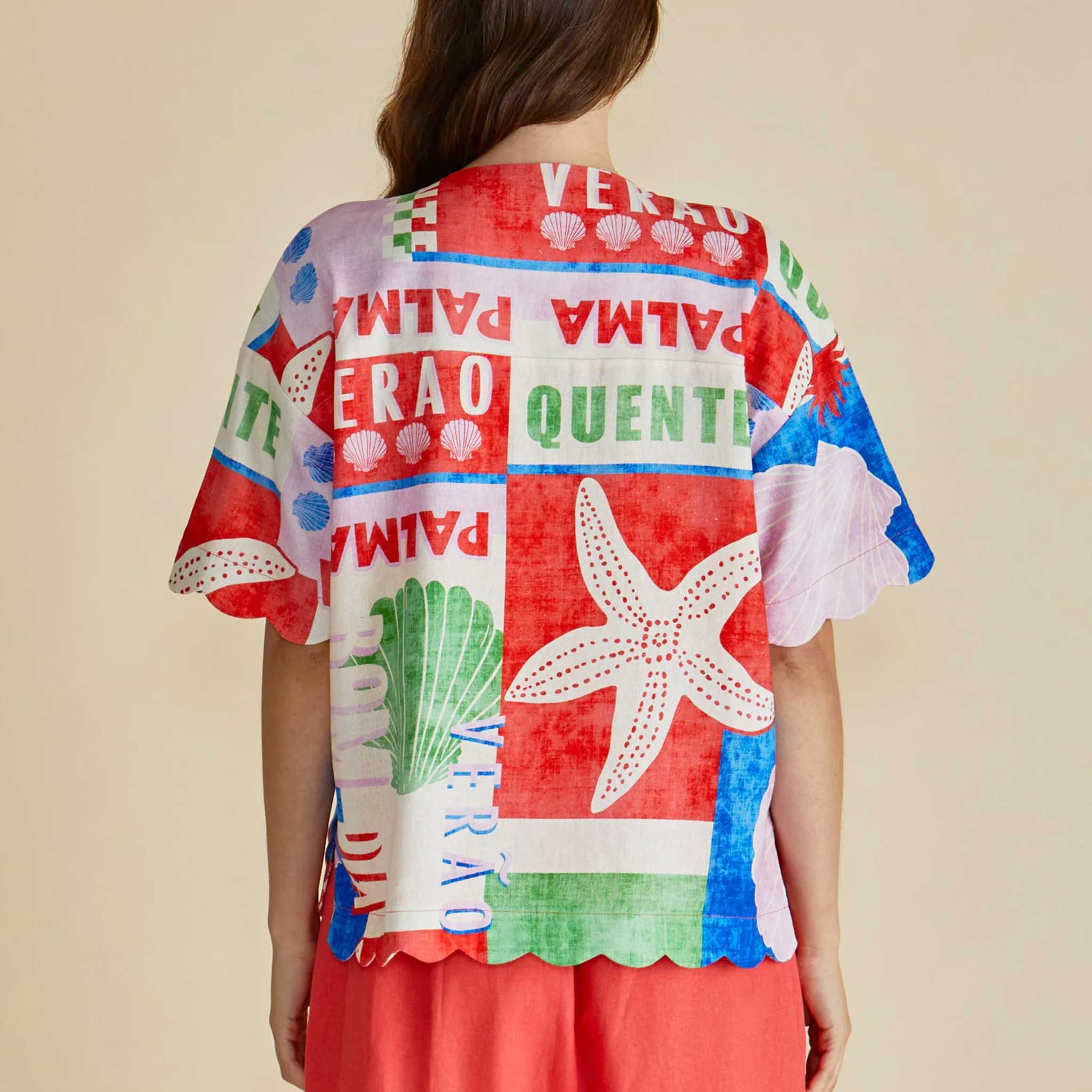 The Scarlett Shirt brings an elevated edge to relaxed dressing. Crafted with a touch of linen, it features a V-neckline, button-up front and intricate scallop trim along the sleeves and hem. Its relaxed silhouette adds an effortless, feminine charm. A timeless transeasonal piece that feels both refined and easy.