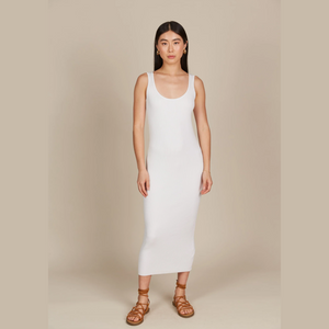 The Adele Tank Dress offers a simple yet flattering design in a gorgeous rib knit. With a stylish scoop neck and sleeveless, fitted silhouette, this midi dress accentuates your curves, hugging them in all the right places. Wear it casually with slides, or go glam for a girls' night out by pairing it with a sheer cape, strappy heels, and eye-catching accessories.