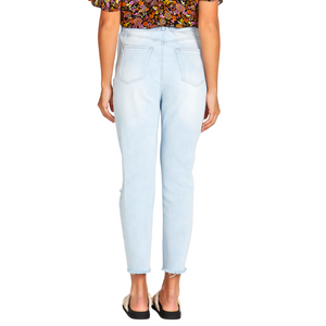 Rock that edgy vibe with the distressed knees and hem, because who says fashion can't be fun? Elevate your denim game with the Becky Jeans where high-rise meets high-fashion!