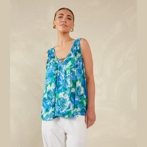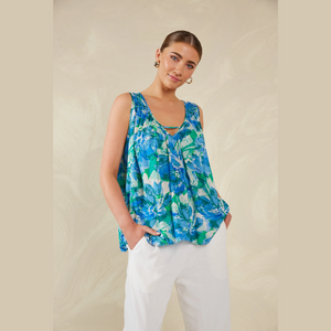 When the sun sets, slip into the Lipari Tank for a night of fun! It features a plunging V-neck with a playful crossover strap, a sleeveless design, and a breezy hemline to keep you cool and comfortable all night. Pair it with tailored trousers or a flowing maxi skirt, add some statement accessories, and get ready to raise a glass with a cheerful 'Cin, cin!' to the good times ahead!