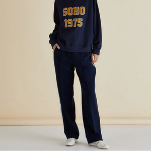 The Maddison Jogger is designed with both style and comfort in mind, made from soft stretch ponte fabric for a cozy, relaxed fit. The wide-leg silhouette gives it a laid-back vibe, while the contrast tape details add a modern touch.