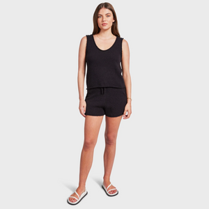 This elegant style is the perfect summer knit short option. With its premium boucle cotton yarn in a forgiving jersey stitch creates the perfect amount of texture and drape, it is sure to become this season's go-to short, looks great worn with the Daisy knit top or tee.