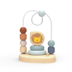 Play with your lion friend, king of the bead maze! Little hands can move the soft coloured beads over, under and across the wire bead frame as they go. This toy encourages dexterity, hand/eye coordination and colour recognition as toddlers guide the 7 beads from one side of the frame to the other. This toy is crafted from sustainably sourced wood from FSC® certified forests and coated with non toxic paint.