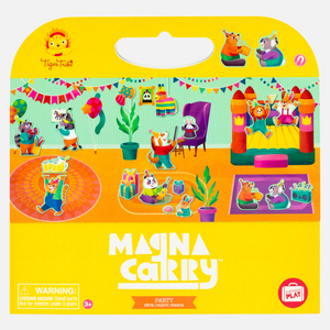 Magna Carry - Party pumps up the fun factor with a delightfully illustrated fold out, magnetic play scene, ready to fill with games and birthday decorations. Pass the parcel, pin the tail on the donkey, dress ups, bang a drum and make some noise. Then cake, fairy bread and yummy fruits galore. Oh dear! Can you see who’s fallen asleep in the corner?
