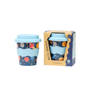 An out of this world babychino cup featuring illustrated rockets, planets and all things space.