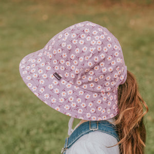 The Bedhead Ponytail Bucket hat is a UPF50+ kids sun hat featuring our unique 'anti-flop' technology ensuring brims won't flop in front of their eyes!