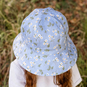 Light and lovely, our Daisy print is pure picnic-day perfection. The classic combo of white florals and soft blue sky makes this hat a go-to for every sunny outing. It’s fully reversible with a calming flax linen for a toned-down option, giving versatility and timeless style in one.