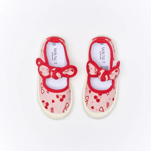 The Millie Mary Jane in Mon Cherie features a sweet cherry and heart print with a simple velcro strap for easy on and off. Lightweight, flexible, and perfect for playdates, parties, and sunny day adventures.
