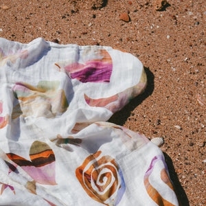Crafted with exclusive artwork by Laura O’Shannessy, the Aura Wrap brings artistry and function together in a piece that works beautifully across baby care and everyday life. Whether it's quietly soothing your newborn, shielding a waking tot from sun during stroller walks, or adding effortless style to your summer outfit, this wrap does it all gracefully.