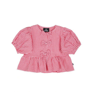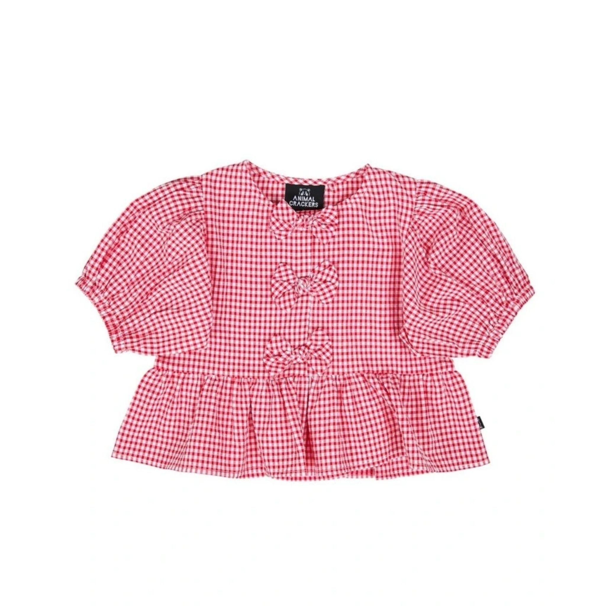 The Checkered Top by Animal Crackers features prefect little bows, front and centre, puff sleeves and a gathered hem. Match back in style with the checkered short, your mini will be adventure ready!!