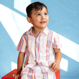 The Flashback Shirt by Animal Crackers will bring back the nostalgic vibes from your own childhood. With its vintage retro stripe fabric, it's an update on an old school classic.