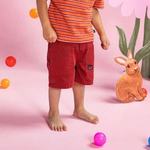 The Glide Short by Animal Crackers is made from 100% cotton drill. It features elastic waist with centre front button closure, side hammer loop detail, large front hip patch pockets and back pockets.