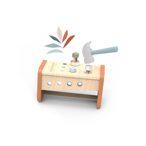 Turn playtime into a construction adventure with our Kids Toy Workbench that doubles as a Toolbox. Equipped with a hammer, saw, screwdriver, wrench, screws, and nails, it's just what your little builder needs to hammer out big ideas! Built tough for enthusiastic play, its compact design makes it easy to store and carry around. Screw in some imagination and build hands-on fun with this delightful gift for your mini carpenter! This toy is crafted from sustainably sourced wood from FSC® certified forests and coated with non-toxic, child-safe paint.