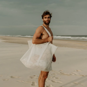 Say goodbye to the hassle of juggling multiple bags. Our oversized mesh beach bag is strong and durable, our signature mesh allows sand to sift through leaving sand where it belongs. Thick cotton straps allow for comfortable carrying and inside you'll find a large mesh pocket, secure canvas zipper pocket and a handy key clip, to stay organised and keep car keys and valuables safe and within reach.