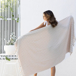 Bambury's Paloma Towels are a stylish towel with a small check pattern achieved through a series of high and low sections of towelling. It is a large towel that is soft and absorbent, perfect for use as a pool towel or as a bath towel and it is finished with a beautiful fringe along the ends.