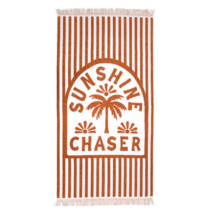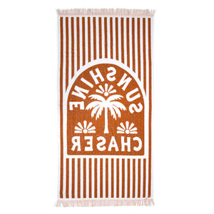 A luxurious beach towel made in Egypt from a fine, high quality durable cotton, that is soft and absorbent, perfect for the beach or pool. The large sized towel features a contemporary design, with a velour finish on one side and natural fringing along the ends.