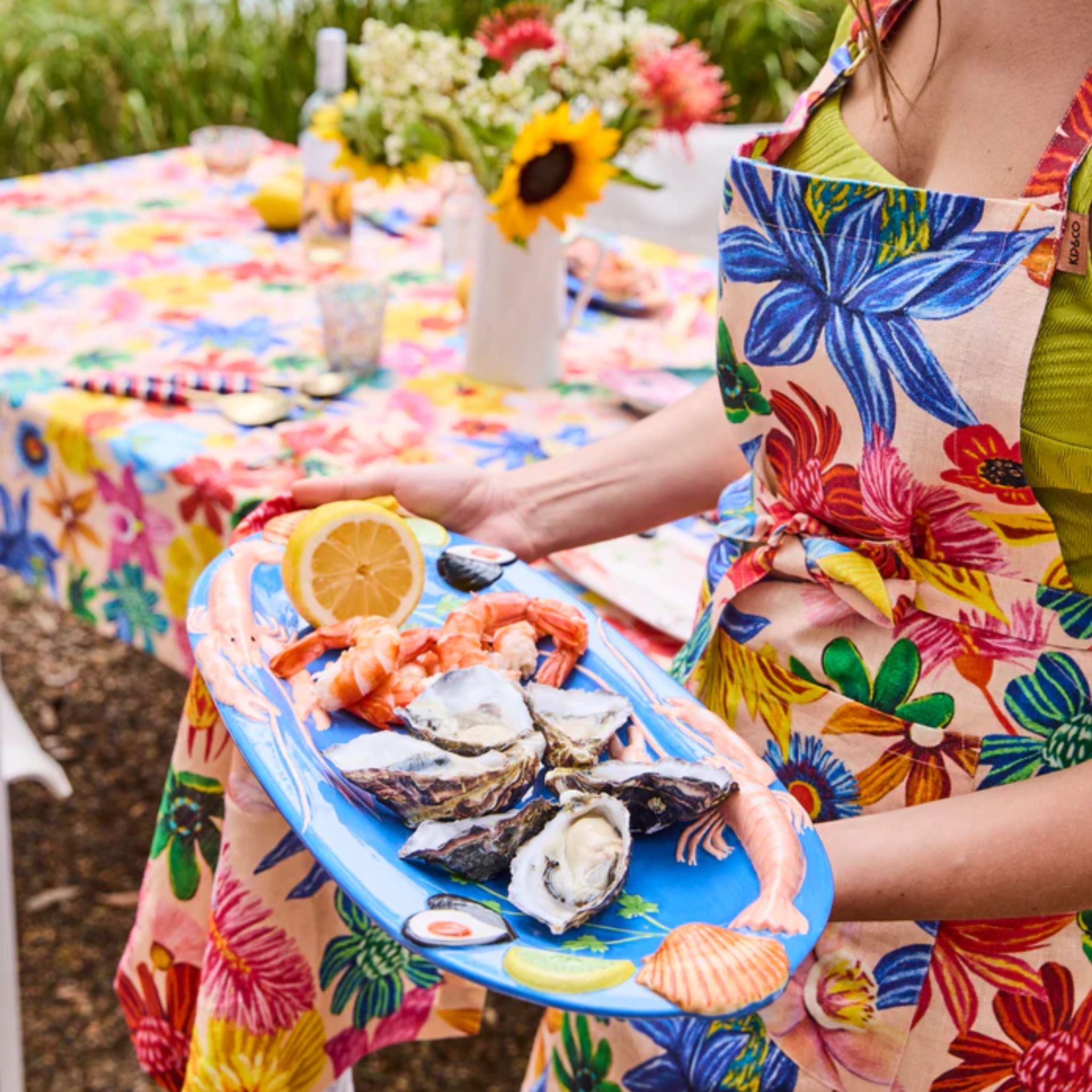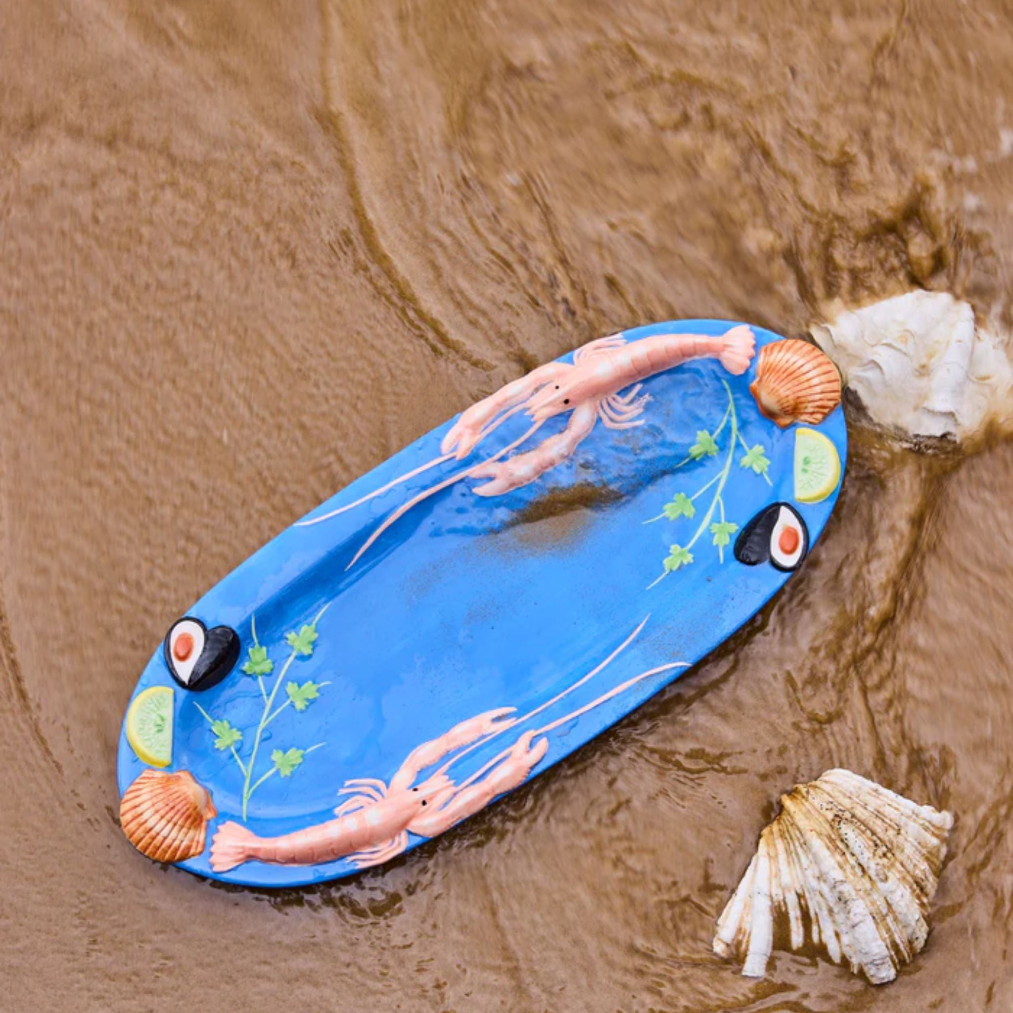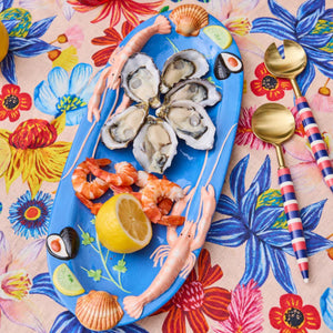Serve up a taste of summer with our Fruits De Mer Oval Platter. Hand painted with lobsters, shells, mussels and lemon wedges on sea blue ceramic, this vintage inspired piece is made for sides, salads and seafood spreads that deserve to be centre stage. Both nostalgic and timeless, it’s a platter that makes every gathering feel like a celebration.
