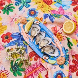 Serve up a taste of summer with our Fruits De Mer Oval Platter. Hand painted with lobsters, shells, mussels and lemon wedges on sea blue ceramic, this vintage inspired piece is made for sides, salads and seafood spreads that deserve to be centre stage. Both nostalgic and timeless, it’s a platter that makes every gathering feel like a celebration.
