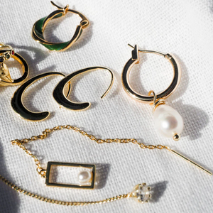 These delicate Gold Vermeil Huggies with a gold and green twisted hoop detail. Handcrafted in 925 Silver, finished with a high quality 2.5 Micron thick layer of 18Karat Gold, ensuring the rich gold lustre is retained longer.