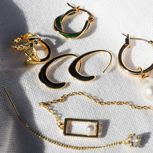 These statement Gold Vermeil Huggie with a string of tiny Multicoloured CZ Gems. Handcrafted in 925 Silver, finished with a high quality 2.5 Micron thick layer of 18Karat Gold, ensuring the rich gold lustre is retained longer.