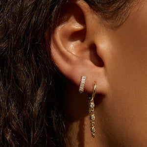 The sparkling Amaretto Huggies are ready to become everyone's new favourite! With shining zircon stones and a gorgeous golden chain, these earrings are elegant and perfect for gifting!