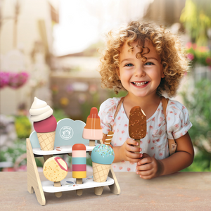 Scoop up some joy with our Wooden Ice Cream Set! Little ones will love creating their own ice cream shop with this delightful and colourful set. Perfect for sparking imaginative play, building social skills and developing hand eye coordination, this set is crafted from sustainably sourced wood from FSC® certified forests and coated with non-toxic, child-safe paint.