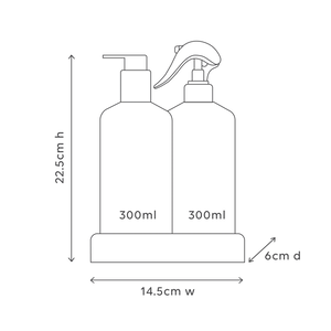 This Premium Kitchen Duo includes a 300ml Lemon & Pomegranate Dishwashing Liquid, a 300ml Lemon & Pomegranate Kitchen Bench Spray and a matching custom tray.