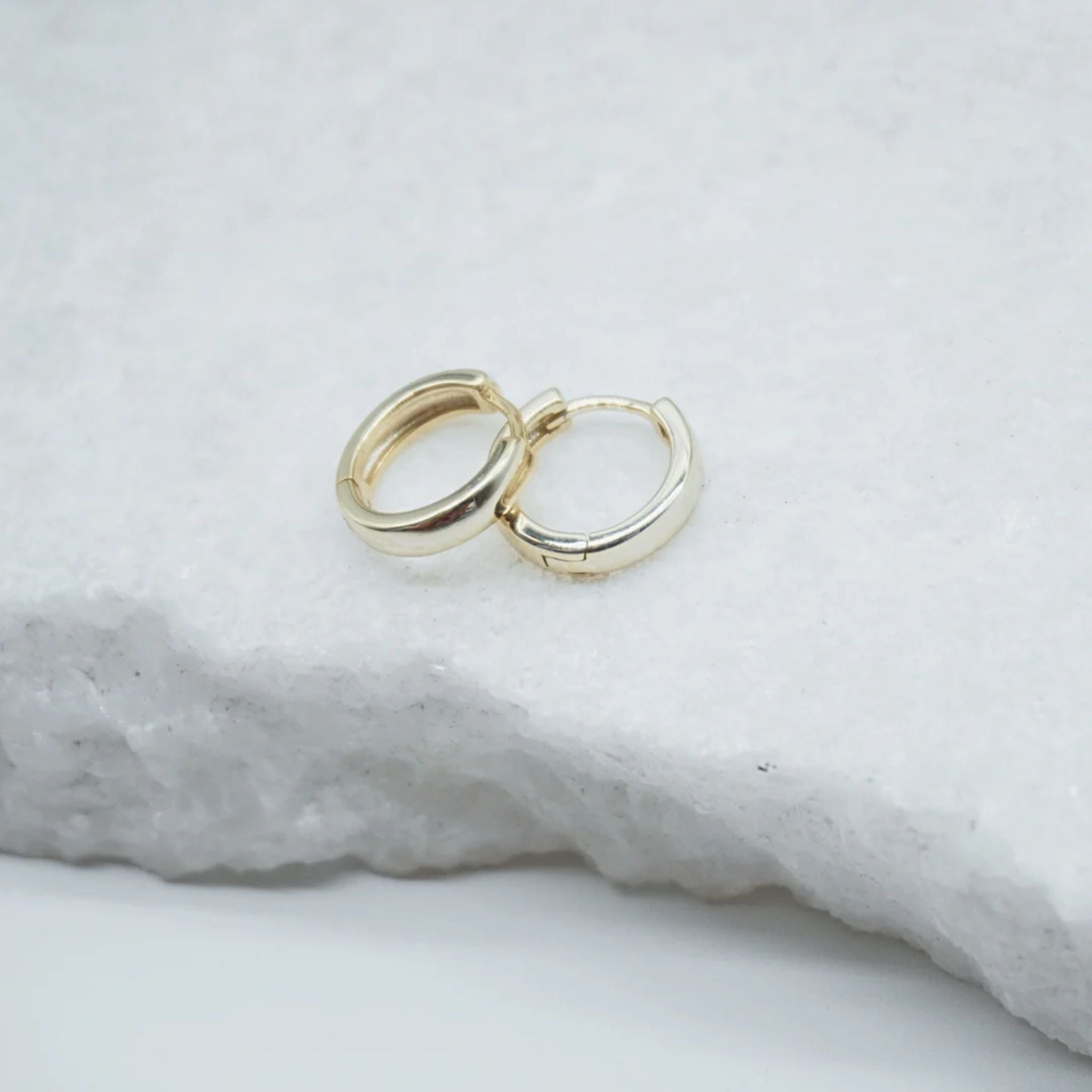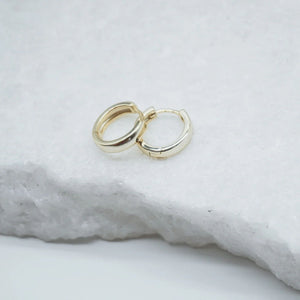 Our Classic gold hoops bring a modern twist to the classic hoop. Their sleek, geometric shape gives your look a bold, contemporary edge while still keeping it small and versatile enough for daily wear. Shine, shimmer, and a little bit of attitude—these hoops are for the girl who loves to stand out.