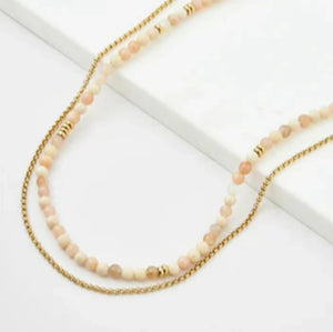 This hand-beaded necklace showcases a beautiful array of natural stones, adding a touch of earthy charm to your ensemble. Its unique half-chain design allows it to be worn doubled over for a layered look or long for a statement style. Crafted with meticulous attention to detail, the Della Necklace is a versatile piece that effortlessly complements any outfit, from casual to dressy.