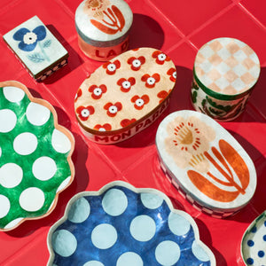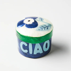 "Ciao bella" circles this luminous Capiz shell box, creating a playful piece that's as functional as it is charming. Designed in Sydney and hand-crafted by skilled artisans, this versatile vessel holds jewellery, keepsakes, or trinkets while bringing Italian flair to bedside tables and vanities.