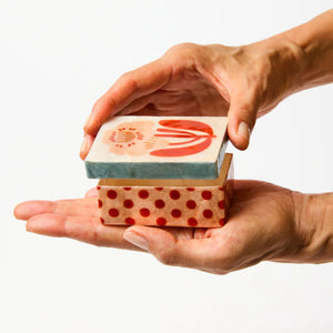 This rectangular small Capiz shell box offers sweet storage wrapped in pink polka dots and florals that catch the light beautifully. Hand-crafted by skilled artisans following our Sydney designs, each piece transforms everyday organisation into a decorative statement.
