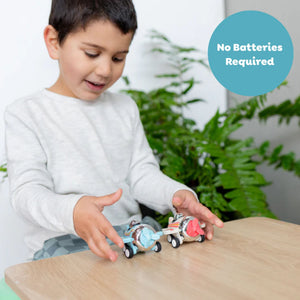 Hey presto! The Presto Plane is a charming retro mini racing toy designed for big fun and fast action. With no batteries required, simply press down on the pilot to activate the clever built in propulsion mechanism and watch it zip across the floor. Designed for little hands and growing imaginations, this classic racing plane is perfect for play on flat surfaces and comes in three fun and collectable designs.