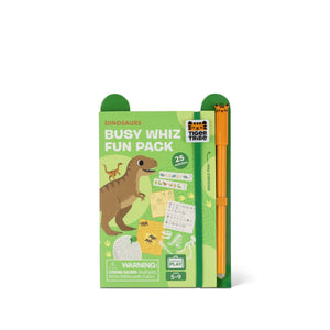 Keep little dino lovers entertained wherever you are with the Dinosaur Activity Book. This compact and travel friendly set is packed with puzzles, mazes, word games and challenges designed to build creative thinking and problem solving skills. With a reusable erasable pen and fun sticker sheet, this set is perfect for car rides, cafés, waiting rooms or rainy day play at home.