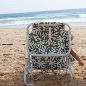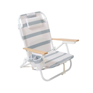 Recline in comfort with the most premium outdoor seat. The Luxe Beach Chair has everything you could want to lean into all summer long. Designed with chic wooden arm rests, 2 drink holders, an insulated zip up cooler pocket, and adjustable padded headrest, relaxing has never been so easy. From beach to park to pool, simply fold it into a backpack and away you go on your next adventure.