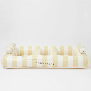 Experience the best of summer where luxury meets leisure. The Mango Bay Luxe Twin Hammock Float is stylish, oversized, and the CEO of relaxation, perfect for floating in the pool and long balmy days spent by the seaside. Designed to be enjoyed by two, featuring a mesh interior and an inflatable tube exterior so you can be partially dipped in the water. Take delight in the simple pleasures and have triple the fun with its golden mustard and cream maxi stripe print that will have you and your two besties drifting into a daydream.