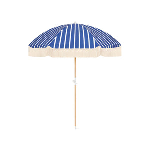 The extendable timber pole includes a tilt mechanism that moves with the sun, so you stay in the shade without having to reposition too often. Lightweight enough to transport and sturdy enough to anchor in sand, this umbrella also comes with a matching carry bag for easy storage. Elegant tassel detailing adds a refined touch to your seaside setup.