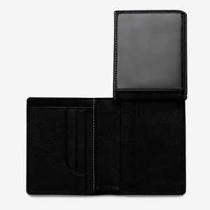 Full grain Italian leather. Classic bi fold with coin pouch and ID window. Presented in eco conscious branded packaging.