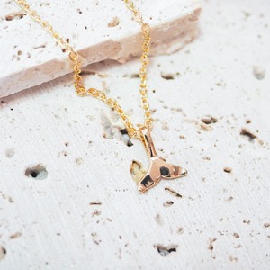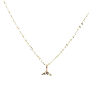 Featuring an 18k gold filled delicate chain, with a delicate whale tail pendant. Tarnish and nickel-free, these chains are water-safe and fit for everyday wear.