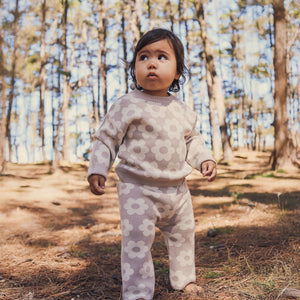 Keep your little one cosy warm while they play and explore! This soft Jacquard Knit Flare pant creates a perfect vintage vibe for layering in the cooler months. Made with soft organic cotton yarns, ensuring it is kind on delicate newborn skin. Pair perfectly with our Neutral Floral Jacquard Jumper.