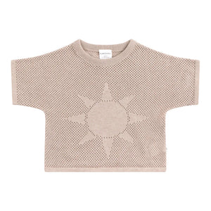 Our Knit Jacquard Sun Tee is crafted from 100% organic cotton yarn with a breathable mesh finish - perfect for sunny days. Featuring an intricate jacquard sun design, this baby tee brings a beachy feel to any summer outfit. Lightweight, comfortable, and ideal for warm-weather play or coastal adventures!