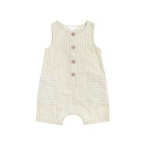 This airy organic cotton romper is lightweight and sleeveless, with a handy button henley style front to make dressing a breeze. Plus, it has an in-leg opening for effortless nappy changes.