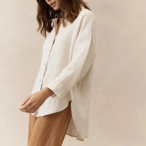 Enhance your wardrobe with our long sleeve boyfriend shirt made of luxurious linen. Perfect for any occasion, pair it with your favourite pieces for a sophisticated look. A must-have staple for any fashionista.